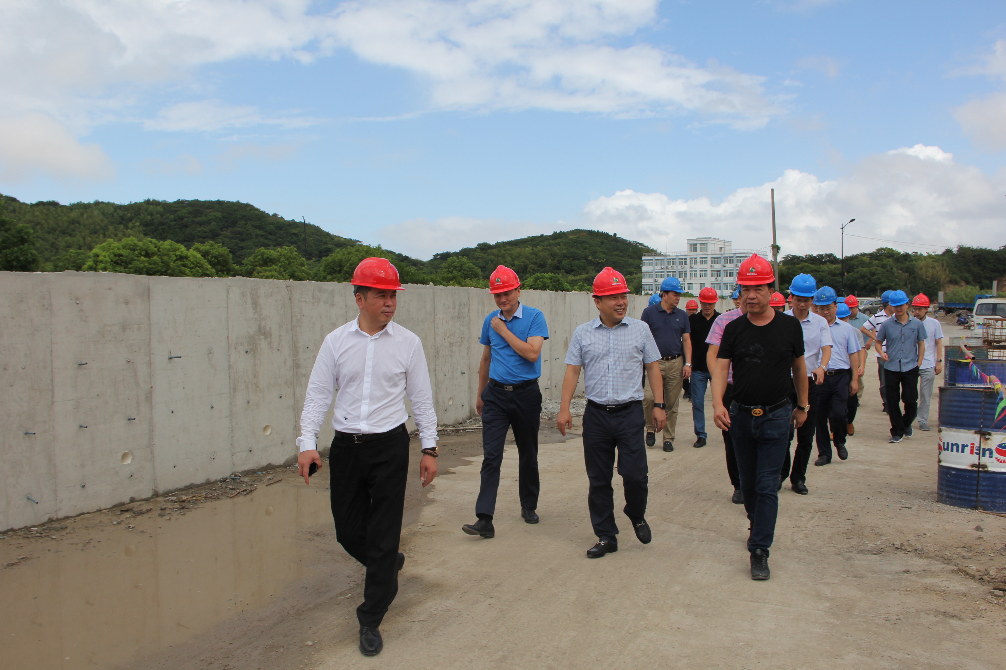 8月15日上午,舟山市定海区委常委、区政府常务副区长毛铁年率区委区政府发改、土管、环保、消防、安全等相关部门负责人一行来到和泓环保纸业进行项目视察调研,集团董事长李善丰、总裁谢海常、副总裁应红波等热情接待来访领导,陪同视察项目工地建设,并汇报项目建设进度。