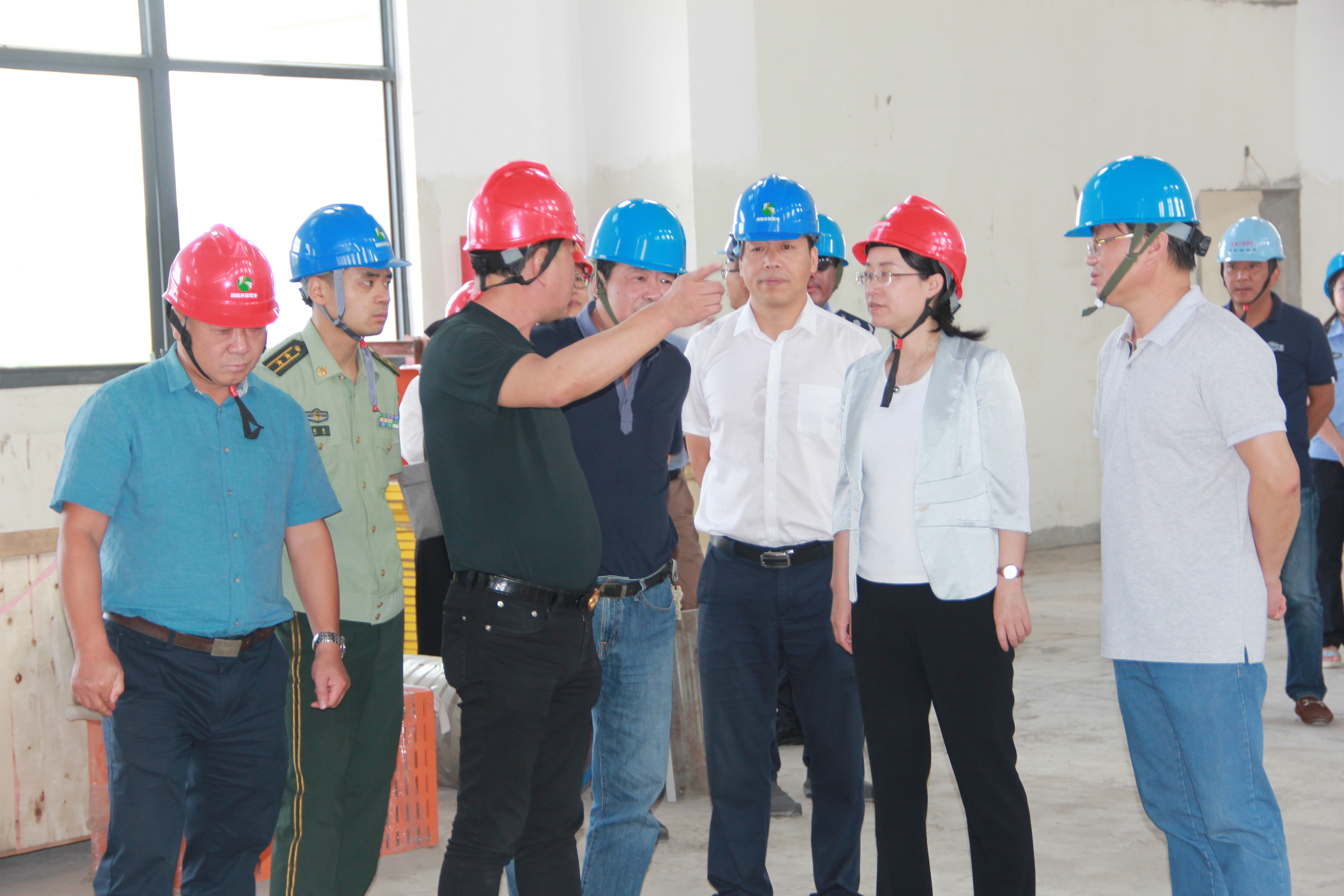 926日下午,舟山市定海区区委书记庄继艳带领区经信科技局、区安监局、区消防大队、区环保局主要负责人一行到浙江和泓环保纸业有限公司开展试生产前安全生产检查。集团董事长李善丰、总裁谢海常和副总裁应红波等陪同视察项目工地建设和设备安装情况,并汇报项目建设进度与二期规划。
