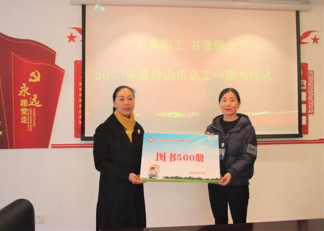 2020年12月30日上午,市总工会王珺副主席带领定海区总工会、马岙工会等有关单位领导一行来到浙江和泓环保纸业有限公司开展以“心系职工 书香暖企”为主题的图书捐赠活动,现场赠予了和泓环保纸业职工书屋500册图书。