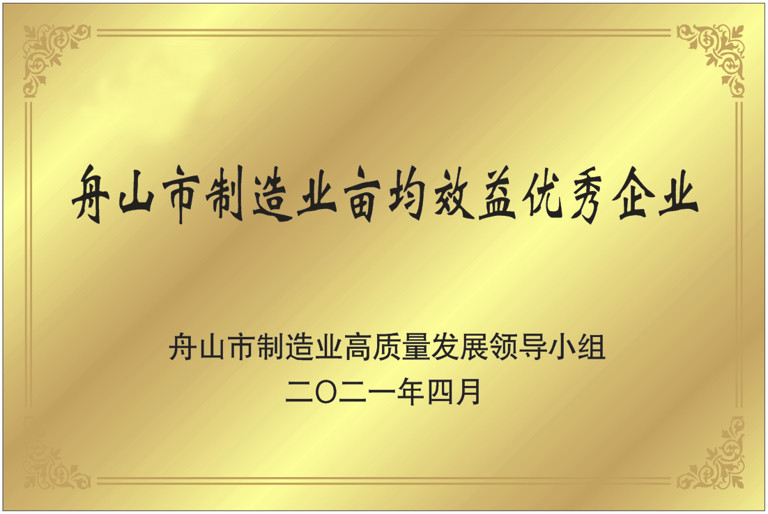 2021年4月26日,在舟山市制造业高质量发展大会上,浙江和泓环保纸业有限公司被评为“2020年度舟山市制造业亩均效益优秀企业”。