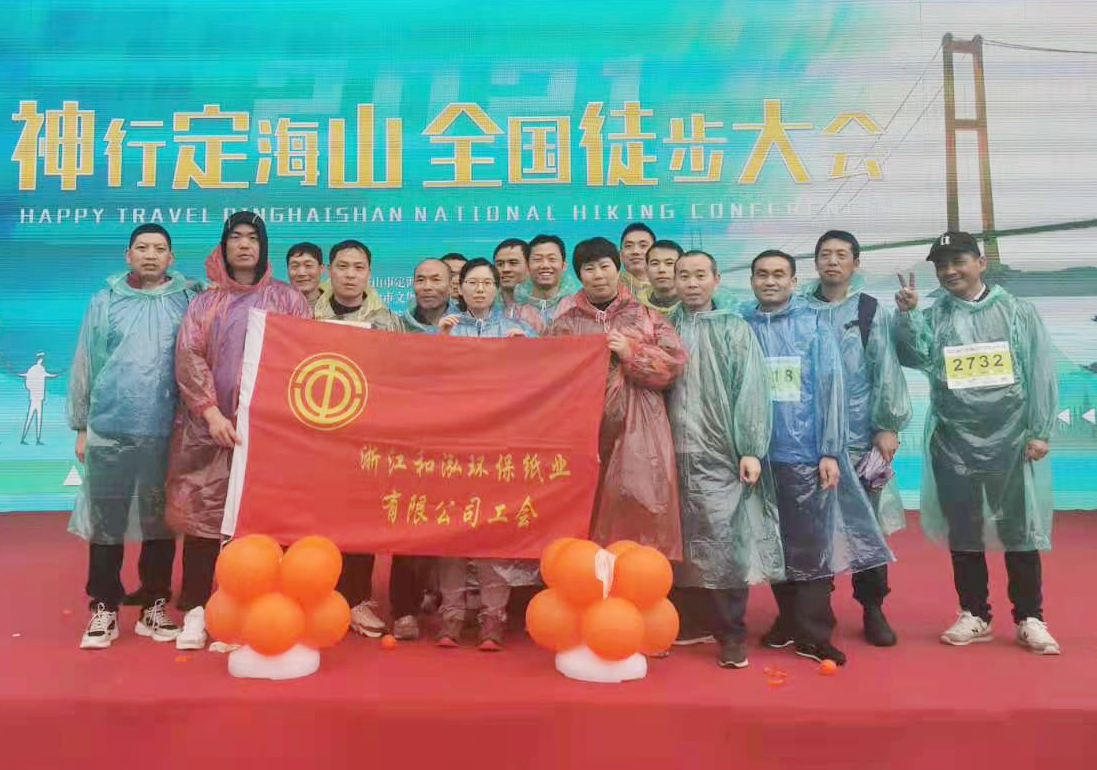 为倡导绿色健康的生活方式,不断践行“沟通、团结、敬业、学习、共发展”的企业文化,4月11日,和泓环保纸业工会组织员工积极参与“2021 ‘神行定海山’全国徒步大会”,与来自全国各地的3000余名徒步爱好者一起穿越山海美景、领略独特的海岛自然风光。