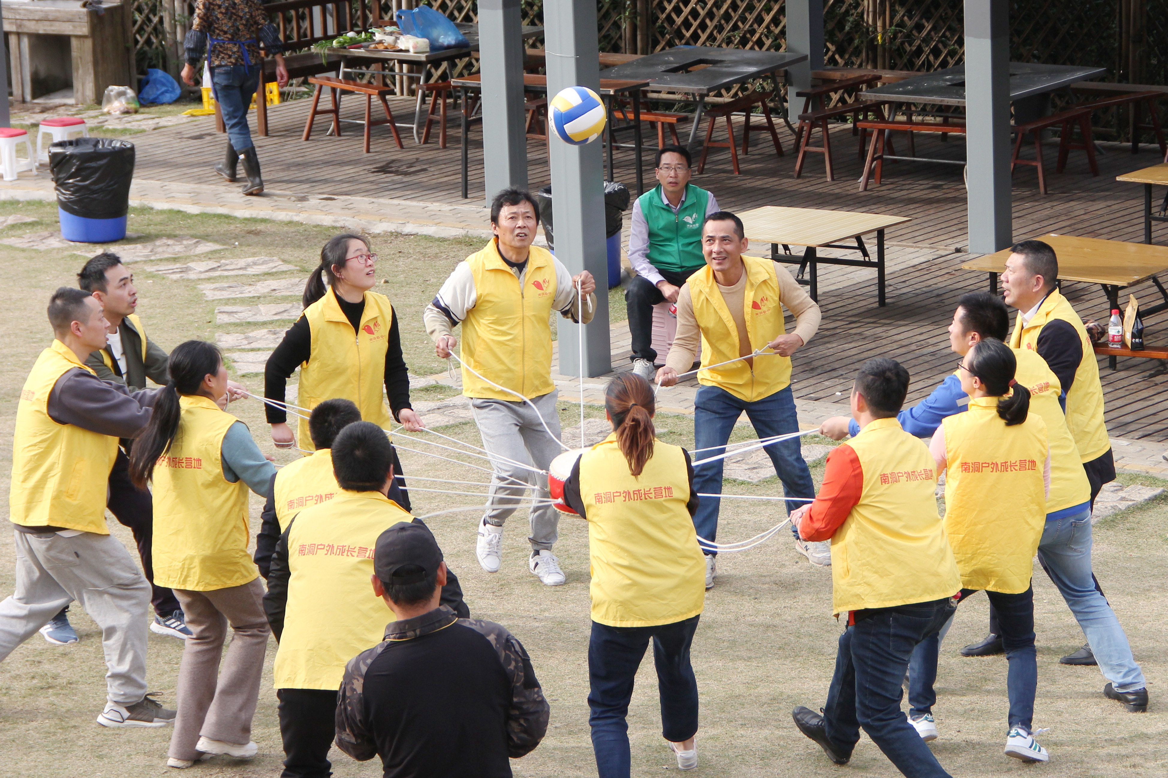 大快朵颐后不知不觉已是下午——“来来来、集合啦!”教练喊着小喇叭:“我们先热身一下!“经过数字抱团和捶背按摩热身运动后,大家已舒展筋骨、游戏热情也被调动起来,竞赛环节正式到来。