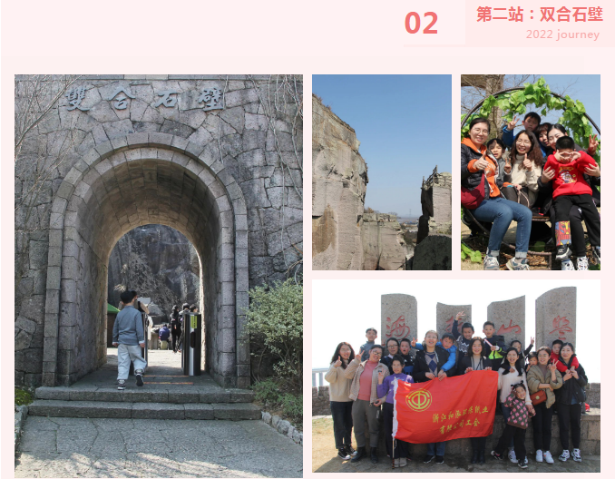 活动第二站:位于岱山岛最西端的“双合石壁”景区。景区内奇峰怪石林立,永结同心、海誓山盟等景点浪漫有趣,大家拾级而上、探幽寻胜,登临高处、极目抒怀,玩得不亦乐乎。