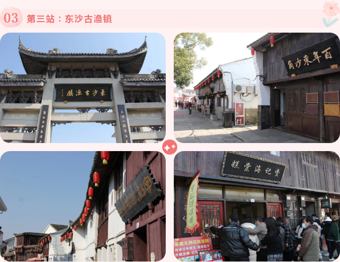 活动第三站:位于岱山岛西北端的“东沙古渔镇”景区。穿行老街,旧商号、古民居迎面而来,品海棠糕、赏昔日风情,令人流连忘返——活动最终在大家尽兴时圆满结束。