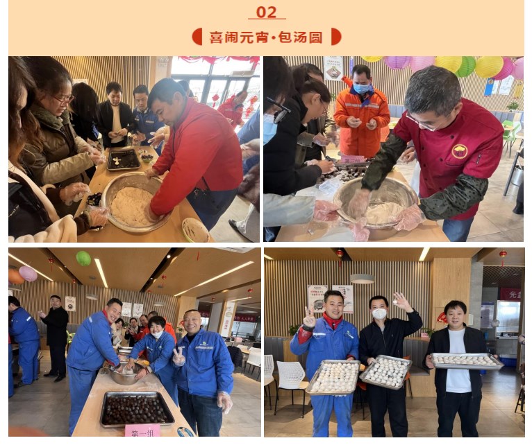 在和泓食堂内,来自五湖四海的员工们欢聚一堂,有的动手和面,有的搓馅料,汤圆馅料有芝麻、豆沙,大家分工协作、配合默契,在欢声笑语、其乐融融的氛围中,包着汤圆,聊着工作和过年的开心事儿,充分感受到了节日的氛围和热闹。
