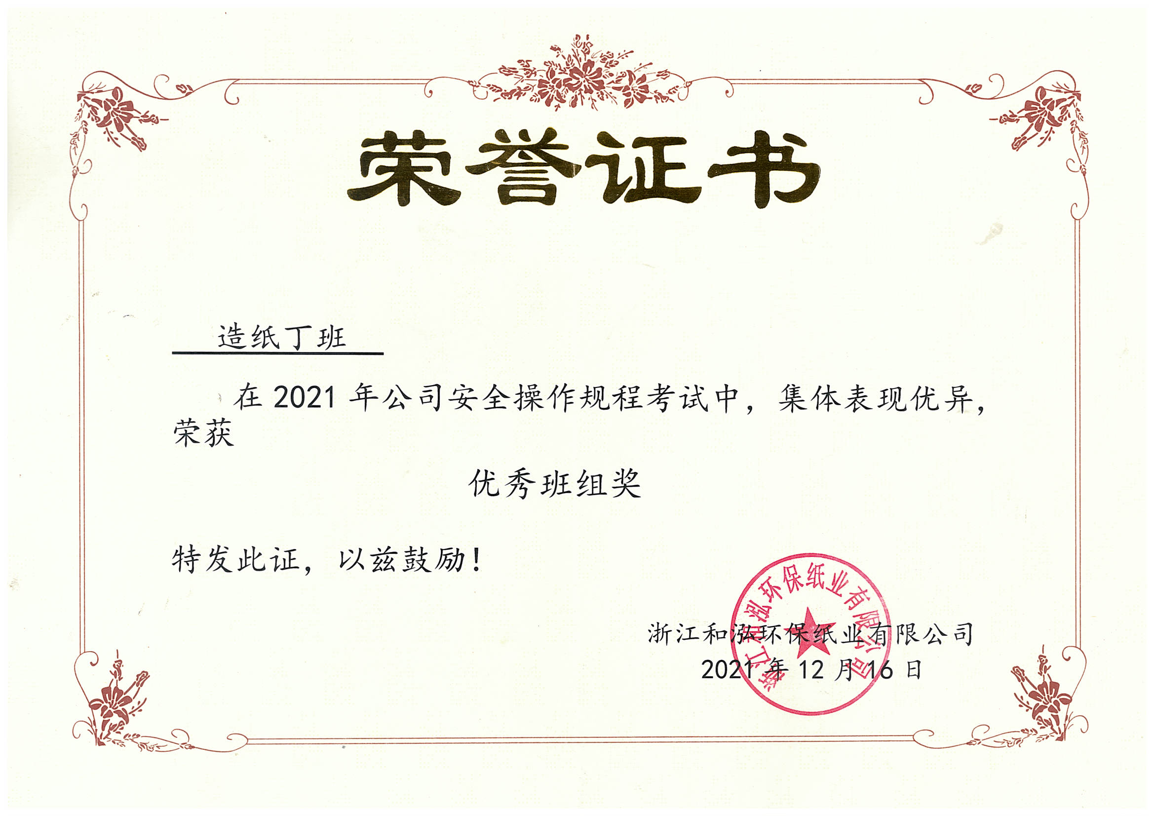 考试在公司综合部、安环部与生产技术部共同策划、组织下成功举办,并根据各班组员工平均分和考核优秀率评选出优秀班组、给予了奖励,切实发挥了考试的激励作用。今后,和泓环保纸业将不断加强员工安全操作规程的培训、考察,提高员工安全操作水平,切实筑牢公司安全生产防线。