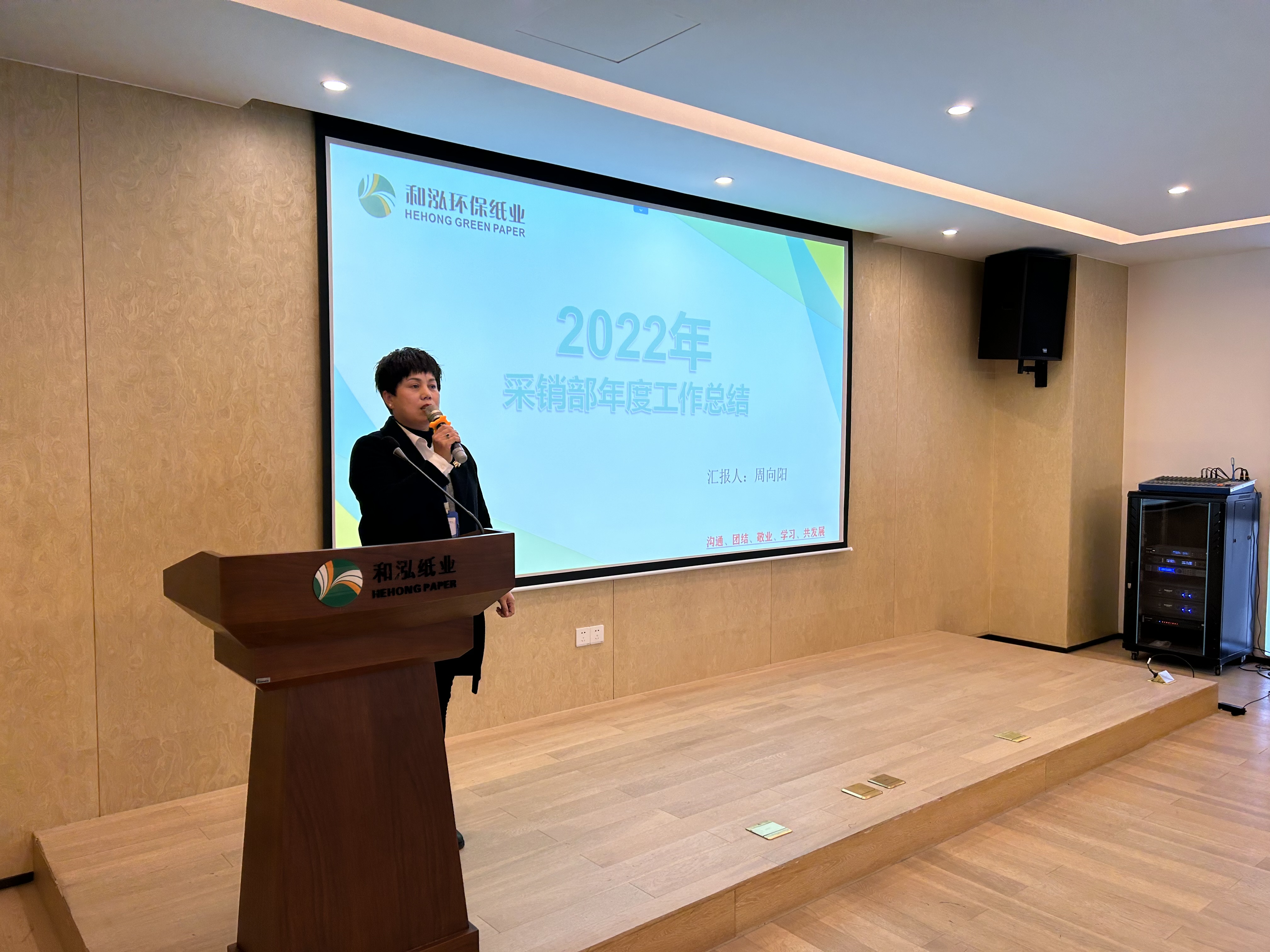 踔厉奋发,焕新起航。为总结2022年度工作完成情况,表彰先进并部署2023年度目标任务,1月17日下午,和泓纸业召开“2022年度工作总结暨2023年动员大会”,集团总裁林刚、公司总经理应红波、总工程师李茂龙等人员参加了会议。