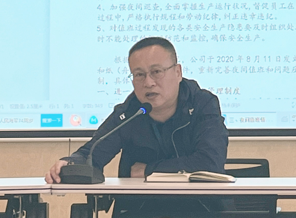 安环部整合部门力量、强化各部门联动,联合消防维保单位对公司所有消防设施进行全面检查,减少安全隐患,对存在的问题坚决按要求予以整改到位,绝不遗漏。完善《夜间值班制度》,值班人员严格按照要求填写夜间值班记录表;同时,强化日常巡查,对配电房、成品仓库等重点区域进行严格管控,杜绝安全事故的发生,确保工作出实效。