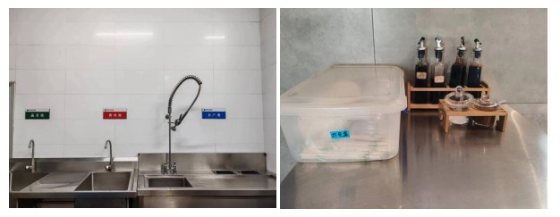 在公司食堂推行“6S”管理,严格落实整理、整顿、清扫、清洁、素养、安全六项制度。食堂每个工作人员都持健康证上岗,严格按照操作规范进行操作;食堂管理人员认真履行职责,对每餐烹饪的菜品进行留样;保证食堂后厨环境卫生整洁,做到仓库各食品分类存储摆放有序、大米离墙离地干净整洁;标志标识清晰可见、工具摆放有序。