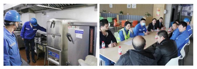 公司严格贯彻落实《中华人民共和国食品卫生法》、《餐饮服务食品安全操作规范》,认真抓好食堂食品安全和现场工作安全:一是落实好食品安全主体责任,加强质量管控,把好食品安全生产关、质量关,切实保障食品安全。每月召开食堂安全管理例会,通过自查自纠等方式,围绕食品验收、存储、留样等方面进行检查,形成安全台账。二是建立食堂应急预案和处理机制,不定期组织食堂员工参与公司应急演练和消防培训,提高员工的火灾应对能力。同时,建立设备维修保养档案,及时排除安全隐患,确保设备正常运作。